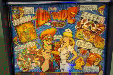 Few games scream 1990 culture more than Dr. Dude. Ready to play at the Greensboro Pinball Museum.